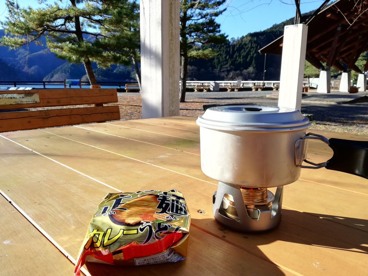 湖畔の公園?も数人しかいない程度に空いており、ベンチで湯沸かししても問題なさそうです。