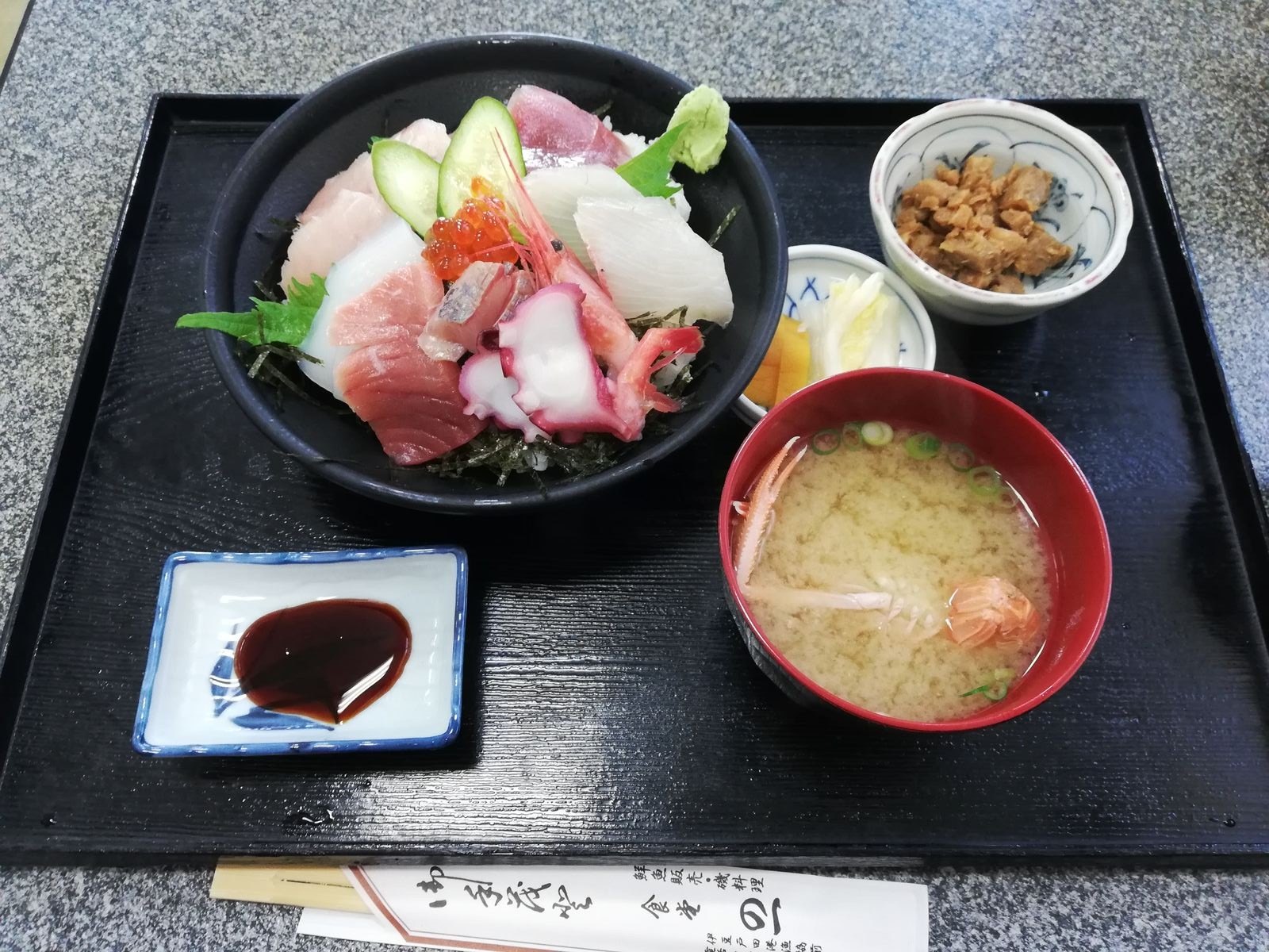 海鮮丼1,500円を注文しました。前回も同じだったな・・・鰺フライにすればよかったかも、と思いつつ。