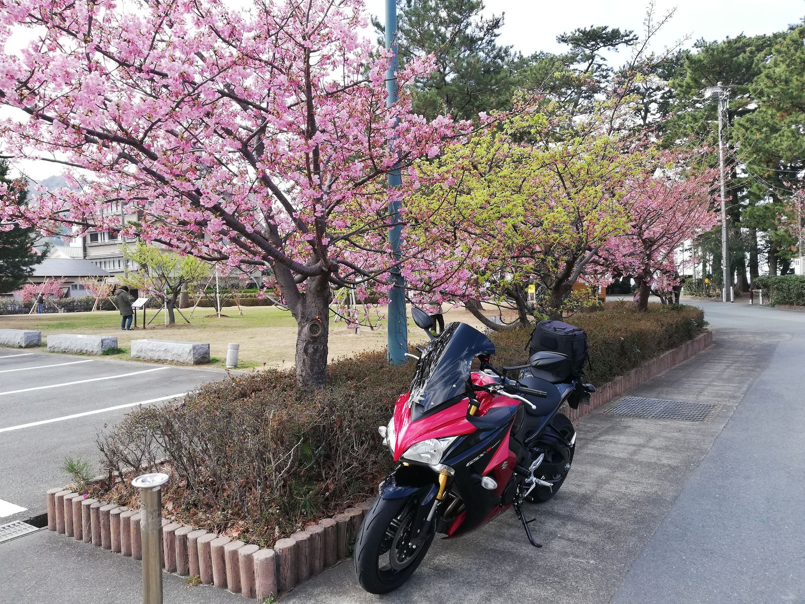 行きがけもあちこち桜が咲いていたのですが、帰り道の土肥の松原公園でパシャリ。