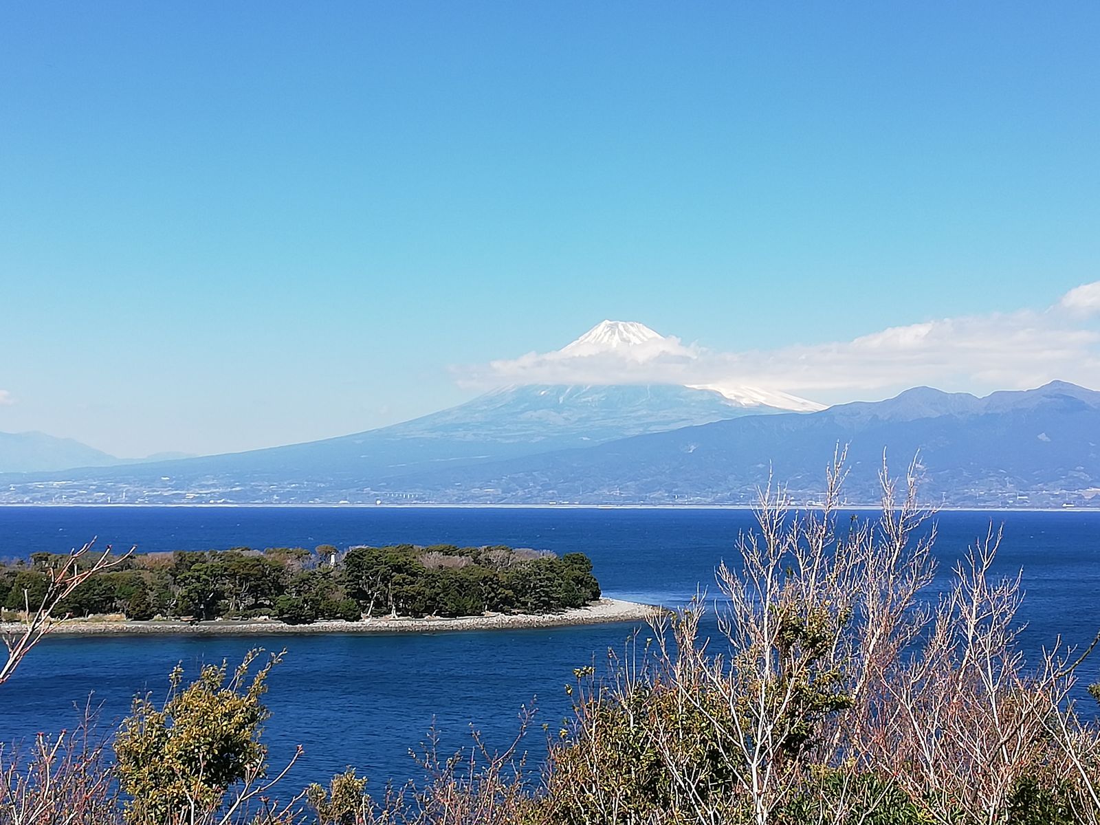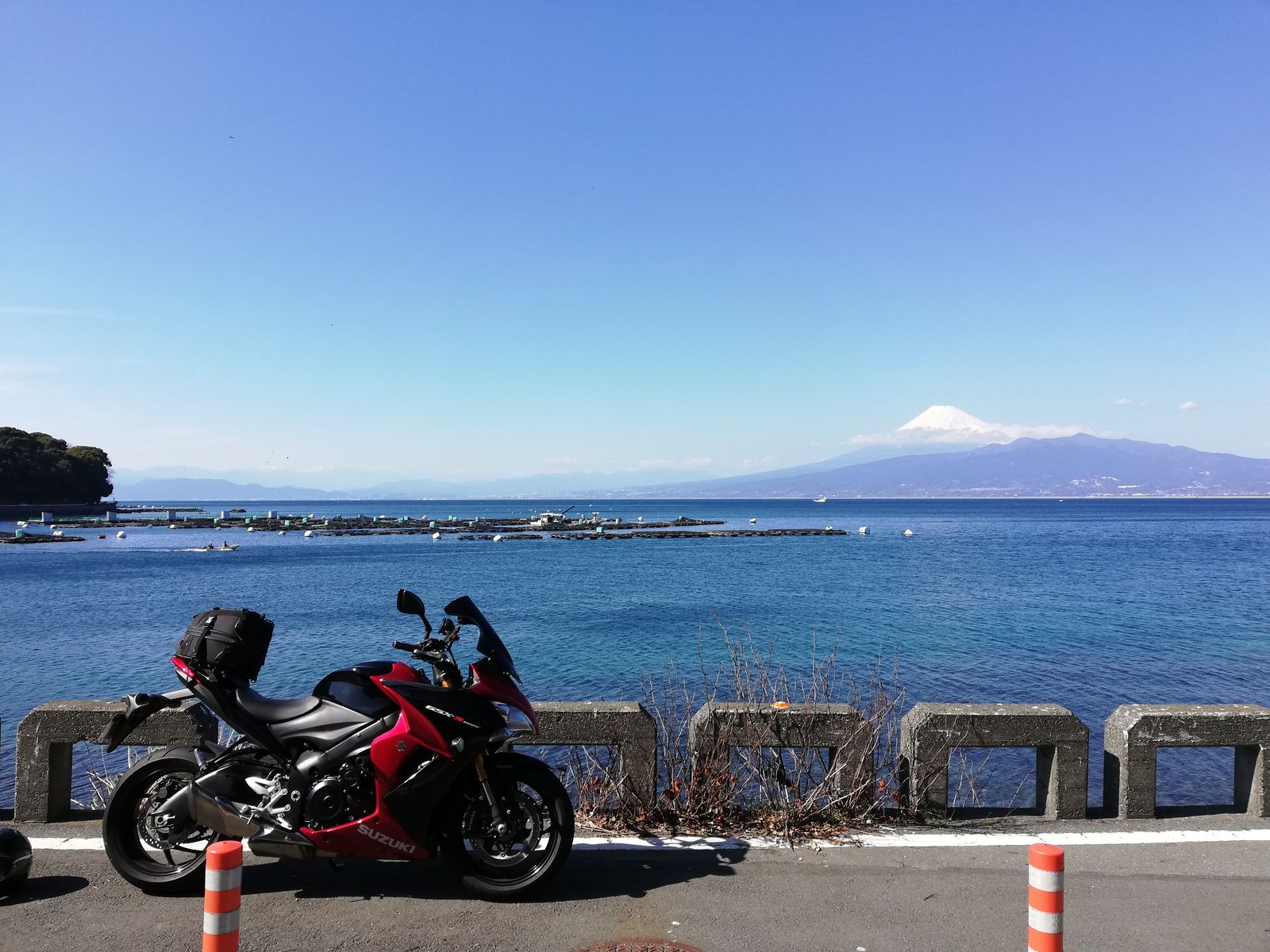 西伊豆スカイラインを出たら、西側に折れて往路の逆をたどる感じで。途中、内浦湾でも富士山がきれいだったので一枚。