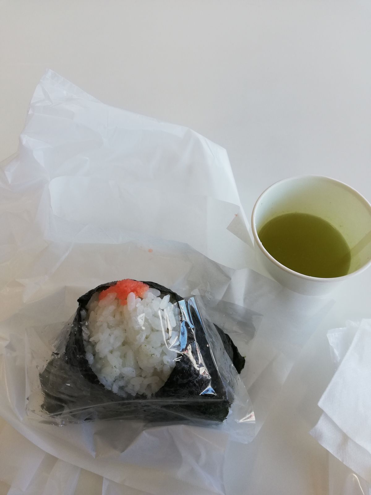 時刻は12:45。めんたいおにぎりを食べました。