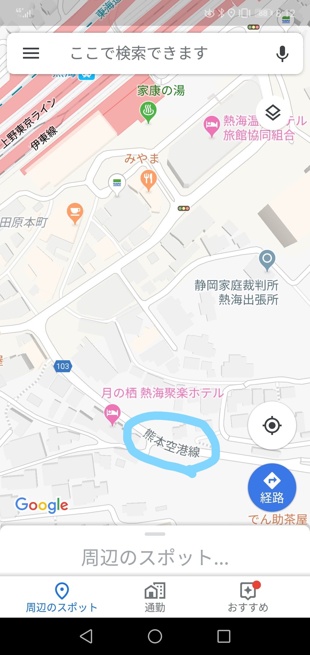 熱海駅前から国道135号線にかけての道が、熊本空港線になっちゃってます。