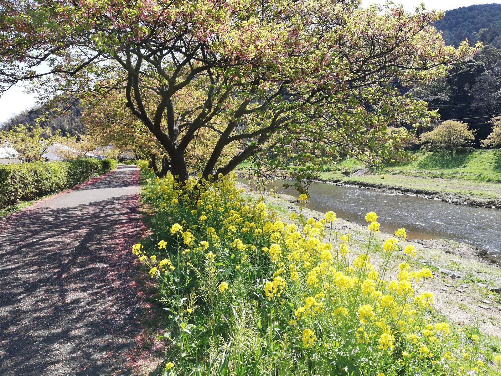 道の駅の裏の川沿いは、河津桜の名所ですが、完全に葉桜でした。実は、先週もここに家族できてまして、先週ならまだ花見はできる程度だったのですがね。