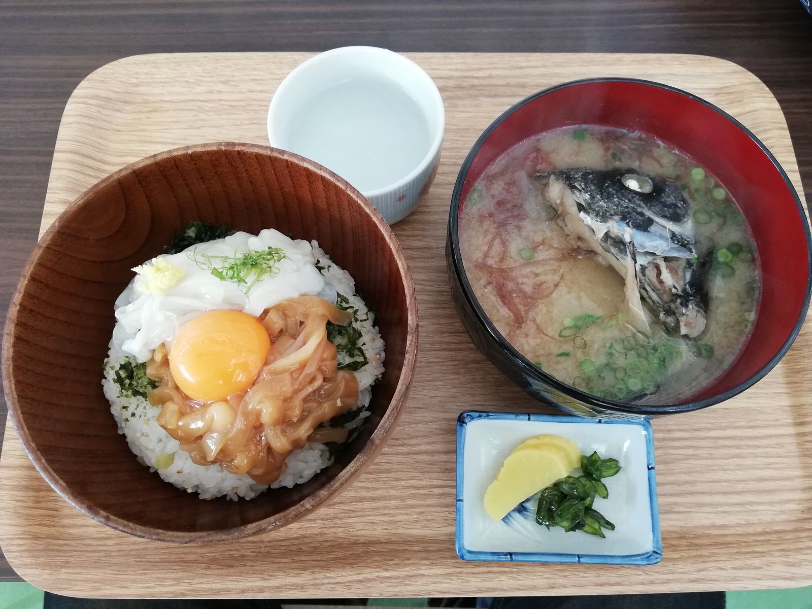 注文したのは、いか様丼とあら汁で820+200=1,020円。あら汁は日替わりの1品料理だったので初めてです。