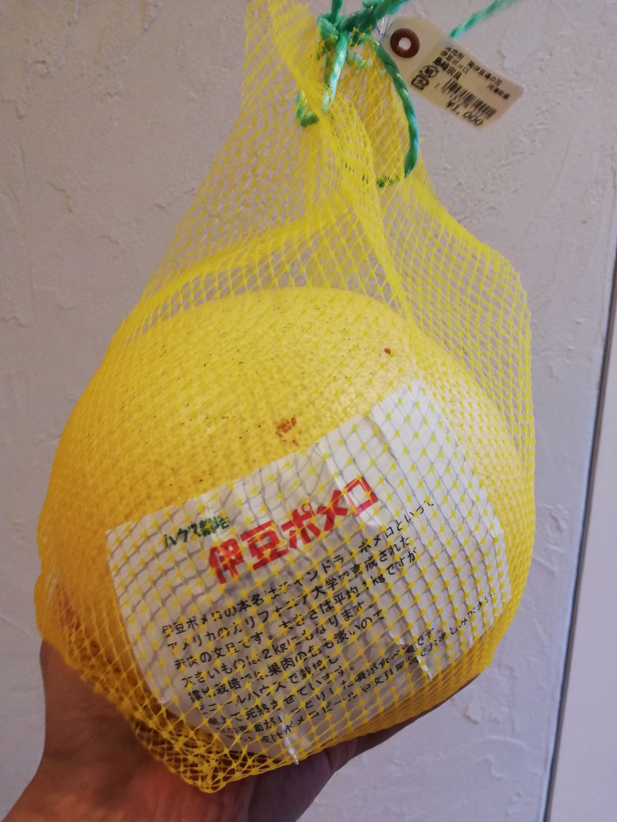 手のひらより大きな柑橘類(伊豆ポメロだそうです)と、海苔。海苔は適当に買ってしまったのですが、国産ではあるものの伊豆産ではなかった。