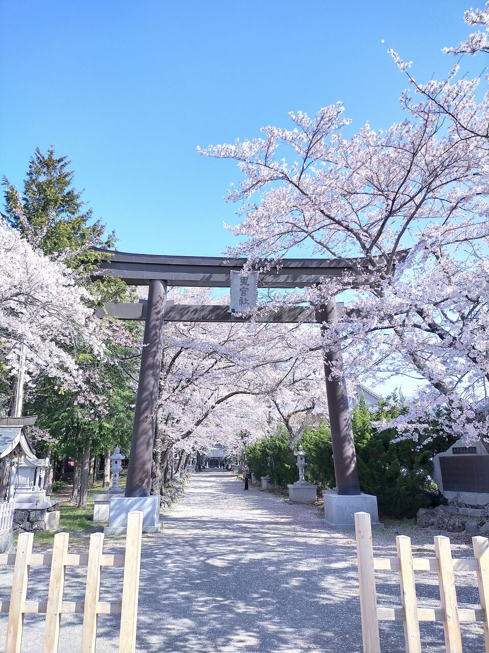 河口湖にある冨士御室浅間神社は、散り始めでした。