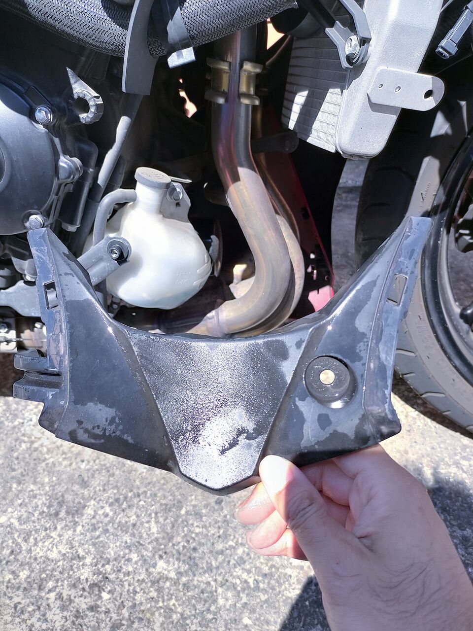 ついでに、右のカウルを初めて外したのですが、左側と大きく違うところ2点。