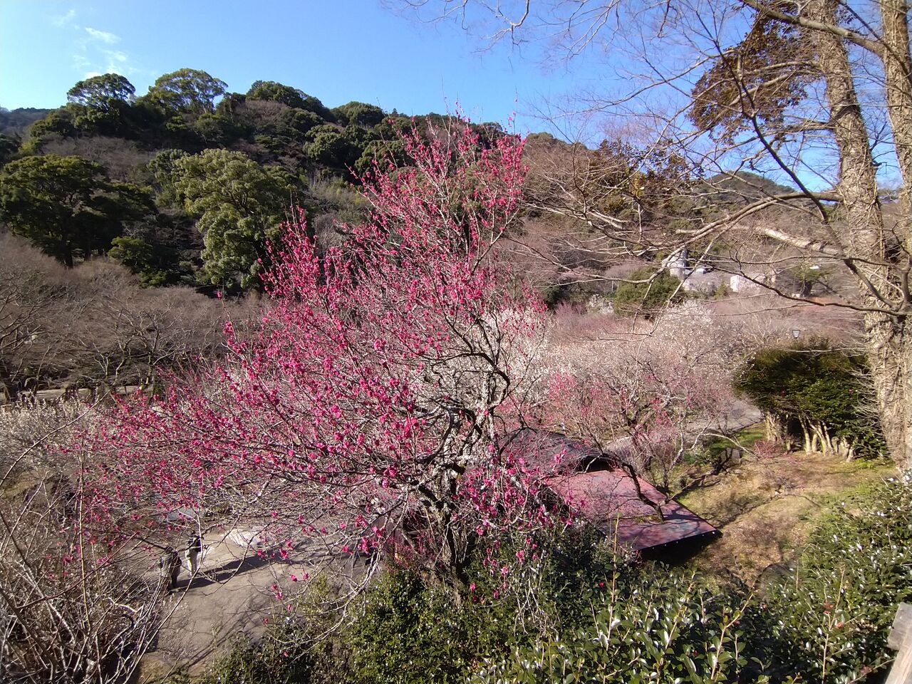 ちなみに梅の季節以外は駐車場も入園料も無料です。園内には紅葉もあるので、秋ならお安く季節感のある散歩ができます。