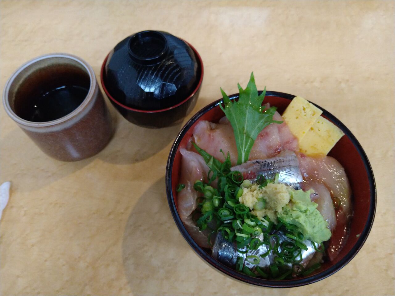 5色丼はネタがたくさんのっていて1,100円とは安い。来てよかった。